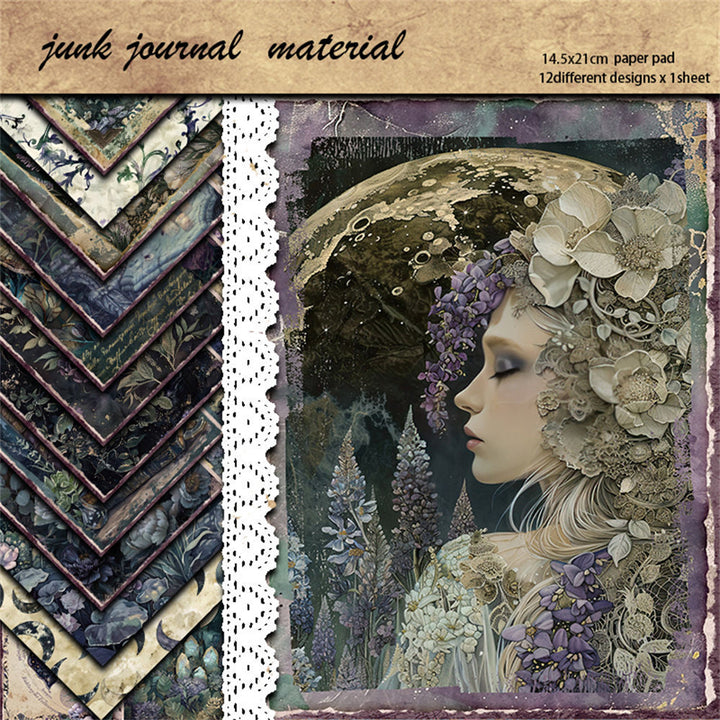 12PCS Moonlight Garden material paper