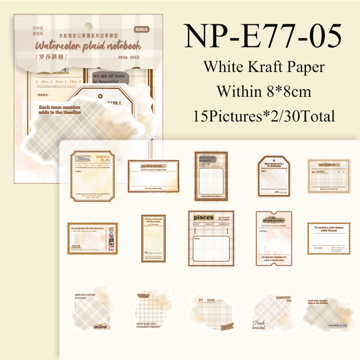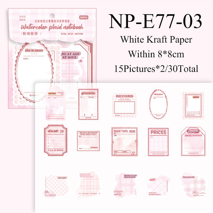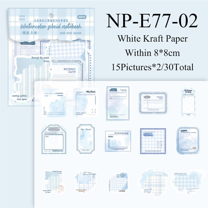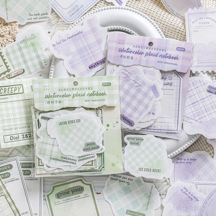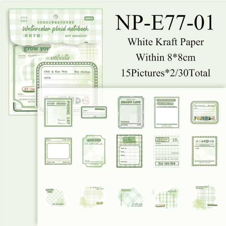 30PCS Watercolor checkered notebook series note paper