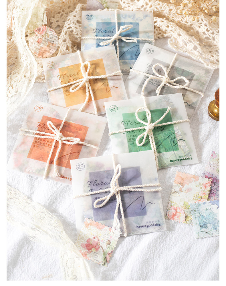 30PCS Floral ink dyeing series material paper