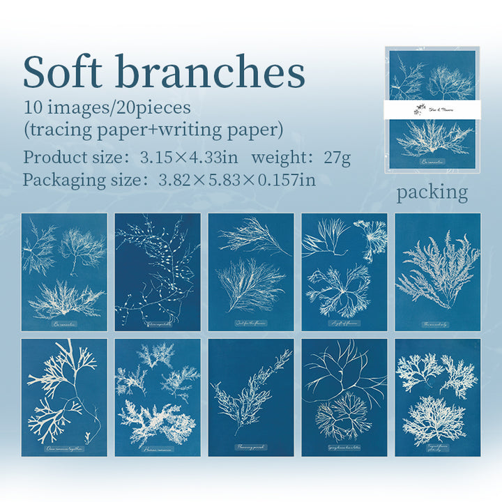 20PCS Blue Flower Shadow Series material paper