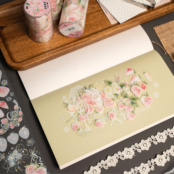 Whole Roll 6cm*5m Strawberry Summer Kiss PET/Shell Light PET Tape