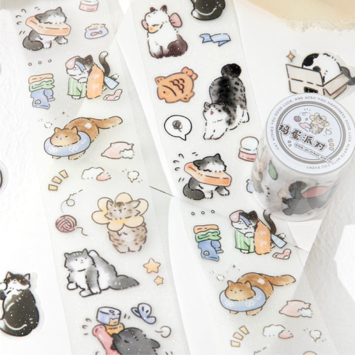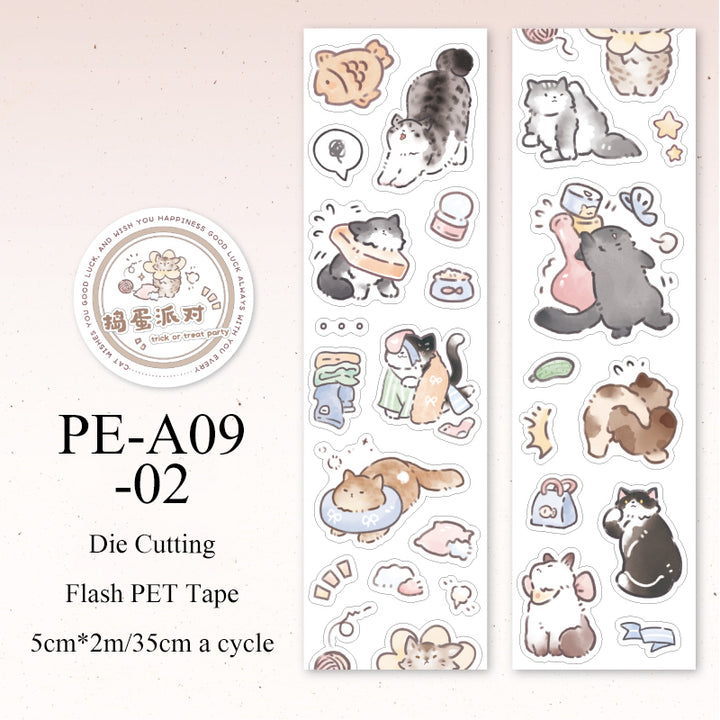 Good Luck Cat Series Die Cutting Flash PET Tape