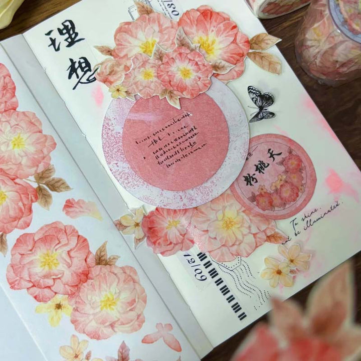 Whole Roll 5.5cm*6m Pink Peach Blossom Washi/PET Tape