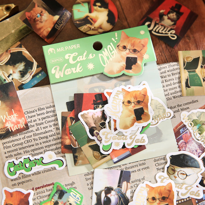 30PCS The Life Art of Cats Series sticker
