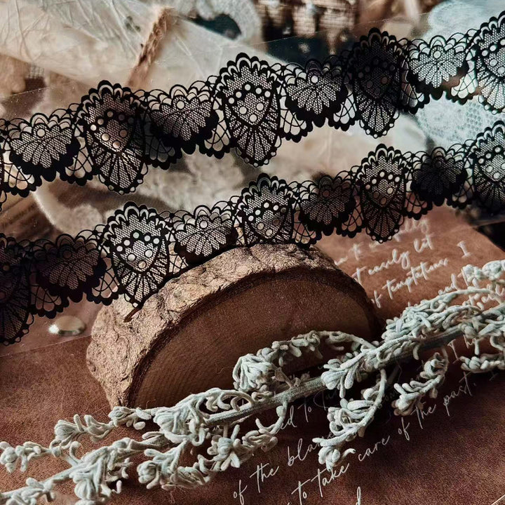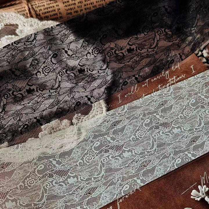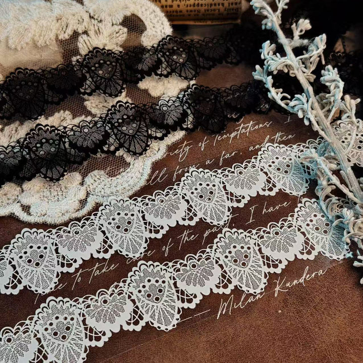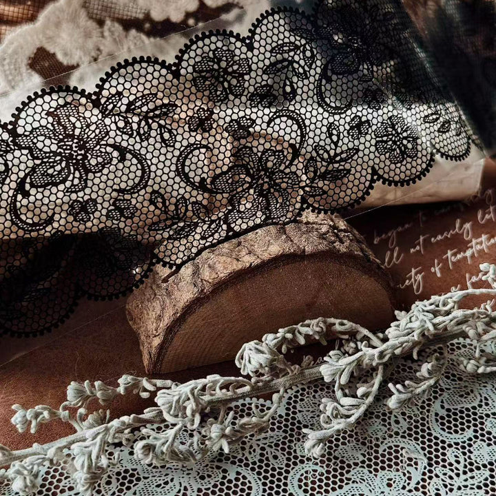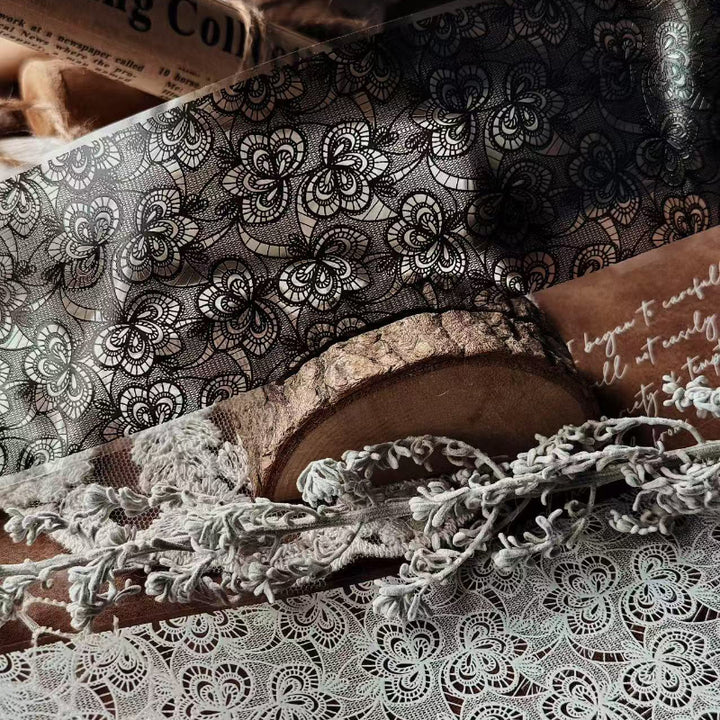 Whole Roll 6cm*5m Black and white lace background PET Tape