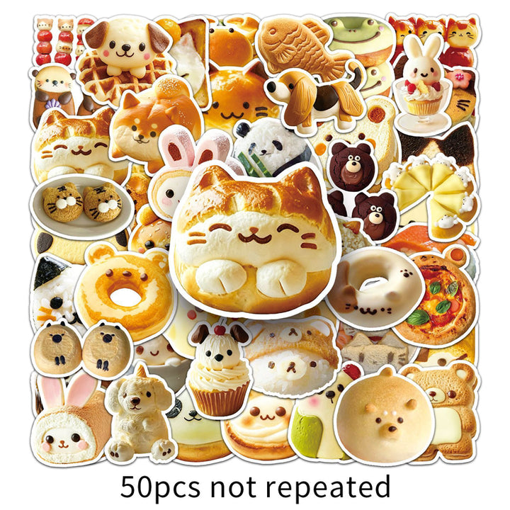 50PCS Cartoon animal bread Sticker