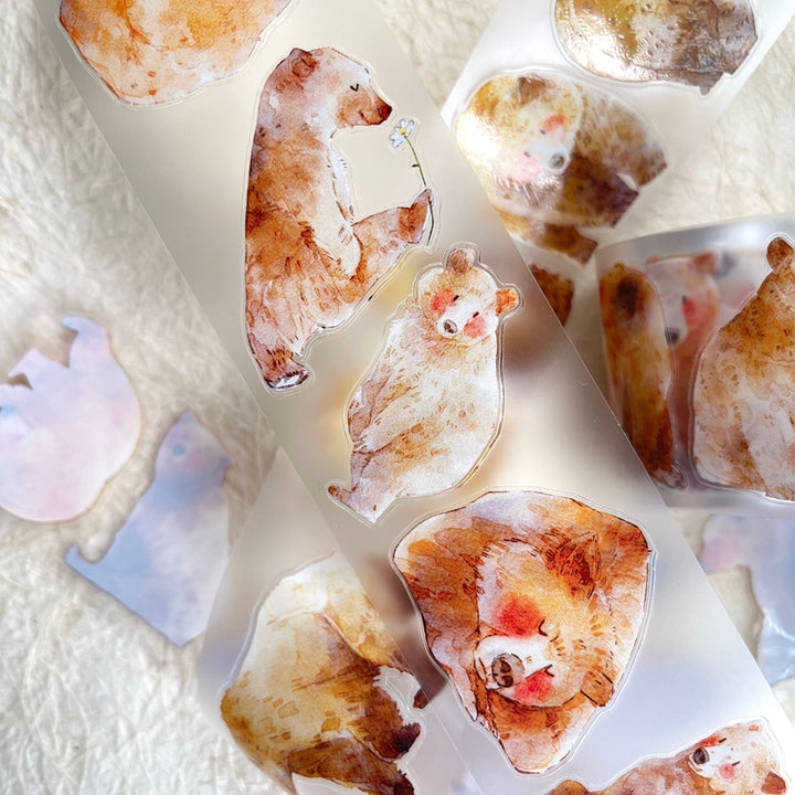 Whole Roll 4.5cm*5m Cute bear Die Cutting Washi/PET/Fog PET Tape