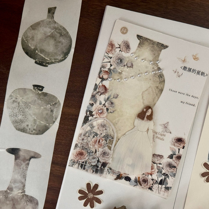Whole Roll 6cm*6m Retro celadon Die Cutting Washi/Flash PET Tape