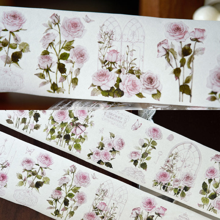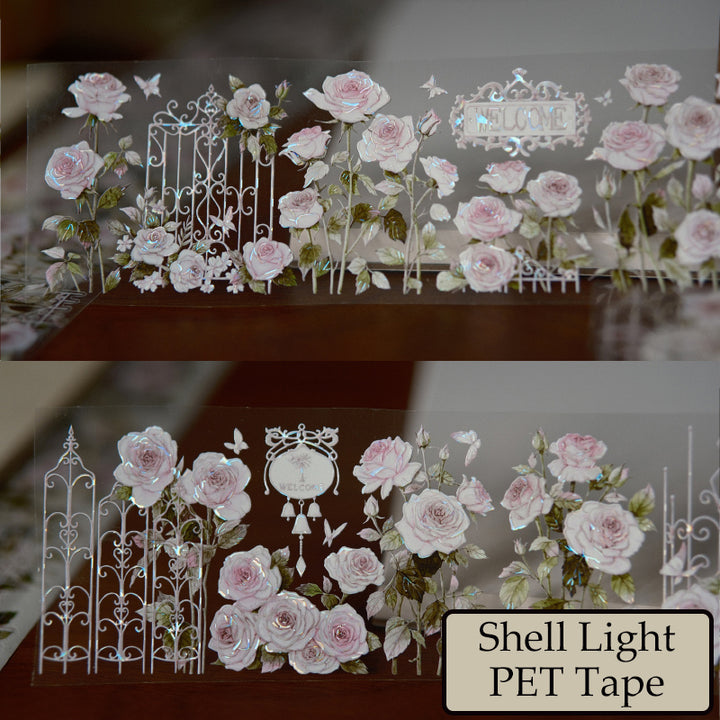 Whole Roll 6cm*6m Rose Garden Die Cutting Washi/PET/Shell Light PET Tape