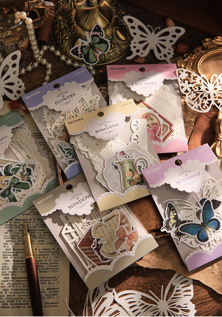 15PCS Lace Fantasia series material paper