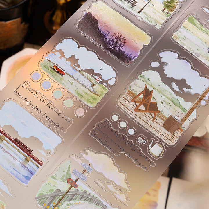 Whole Roll 5cm*6m Full of scenery Die Cutting Washi/Fog PET Tape