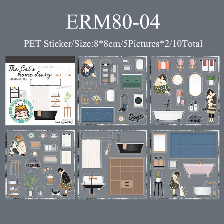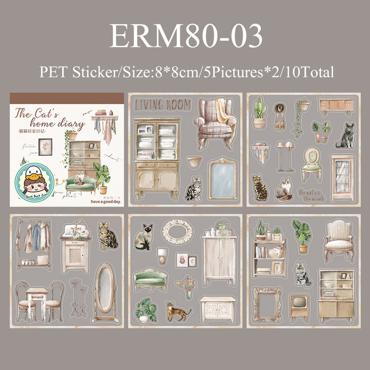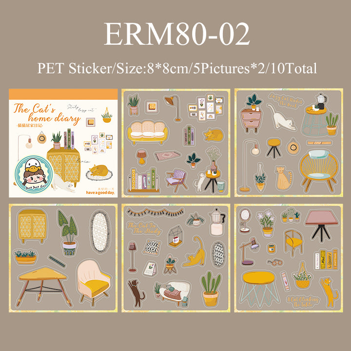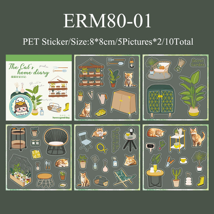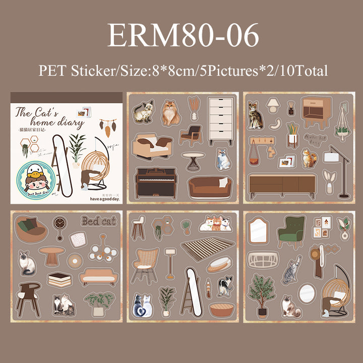 10PCS Cat's home diary series sticker book