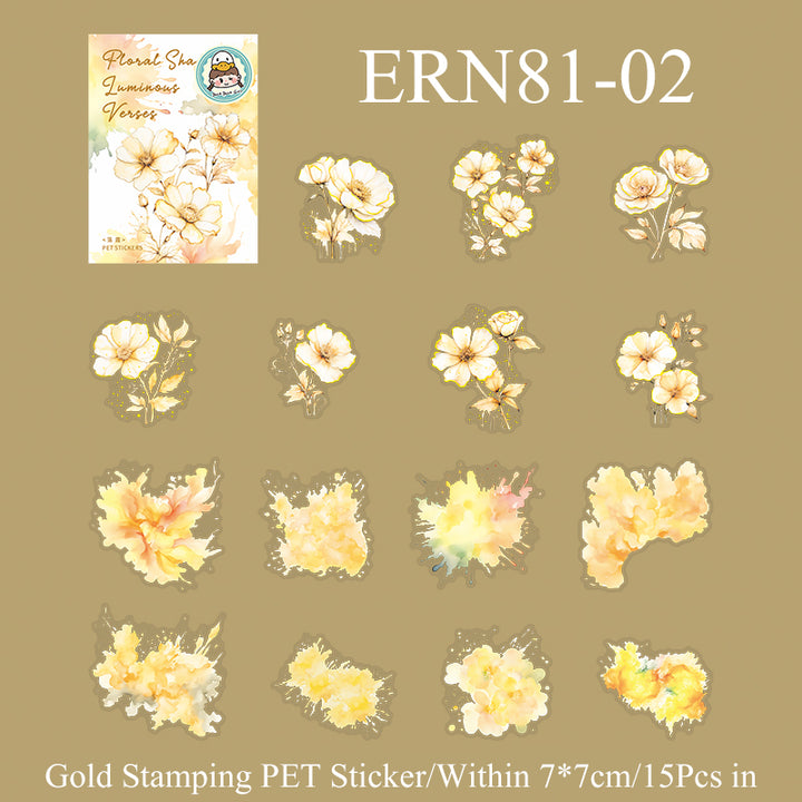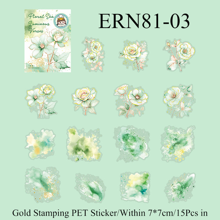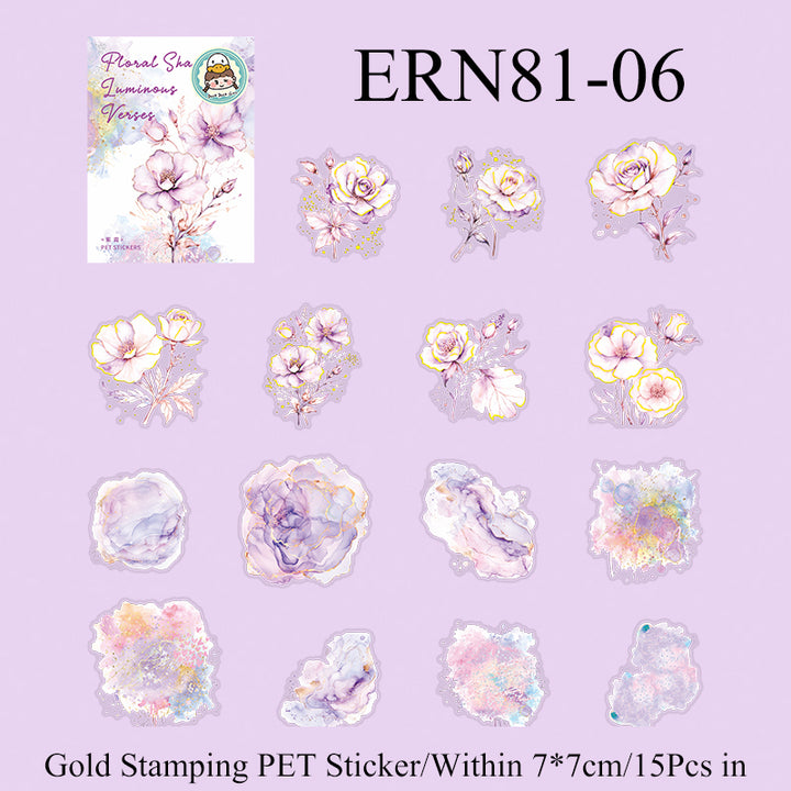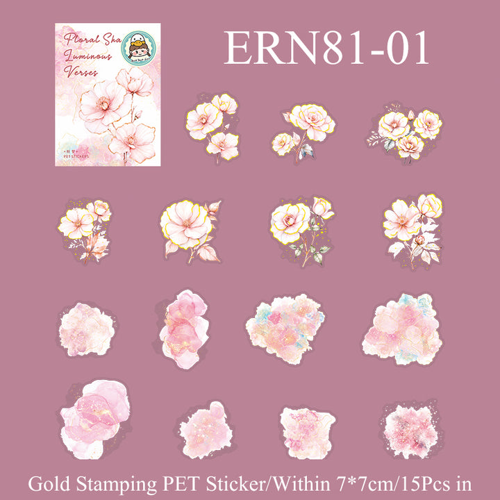 15PCS Luminous flower verses series sticker