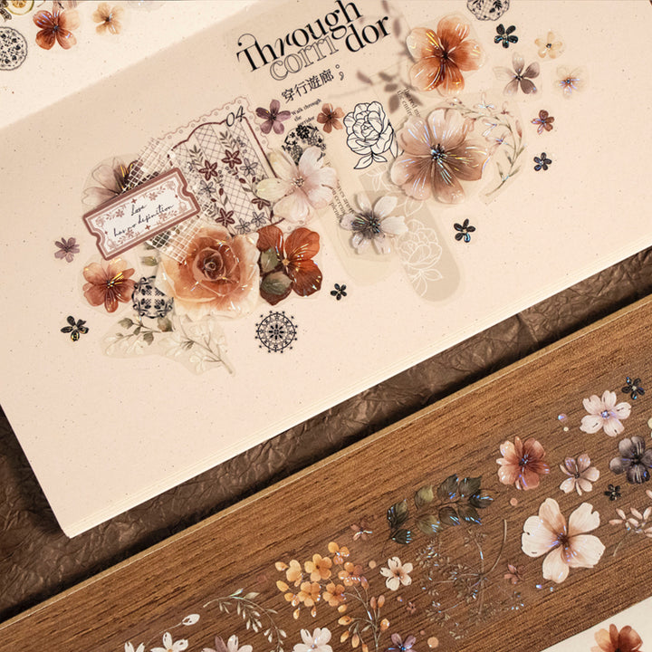Whole Roll 4.6cm*6m Like brocade Washi/Shell Light PET Tape