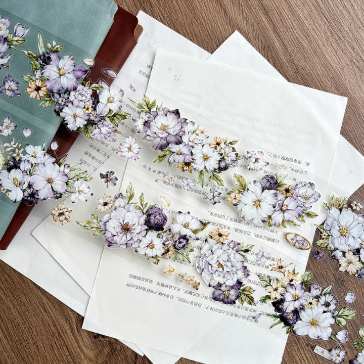 Whole Roll 6cm*5m Purple rhyme Die Cutting Washi/PET/Shell Light PET Tape