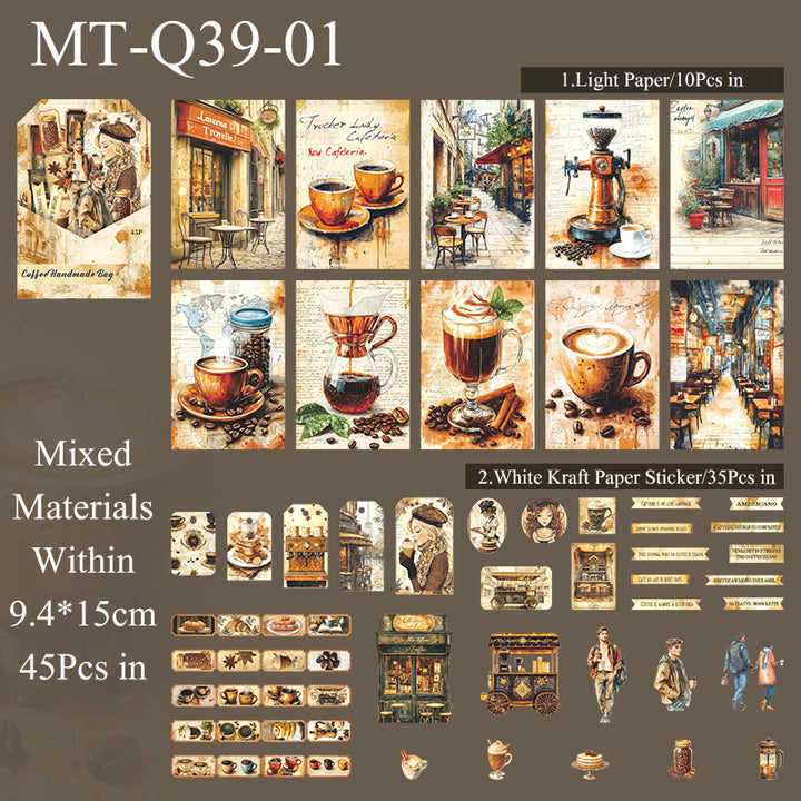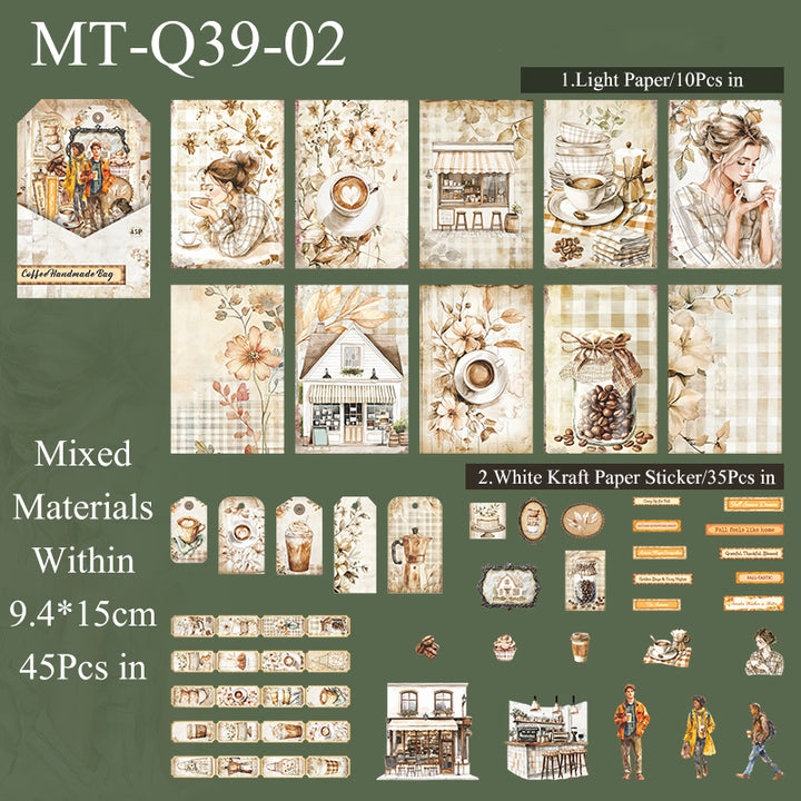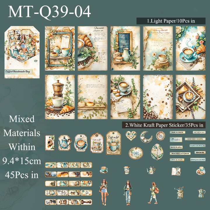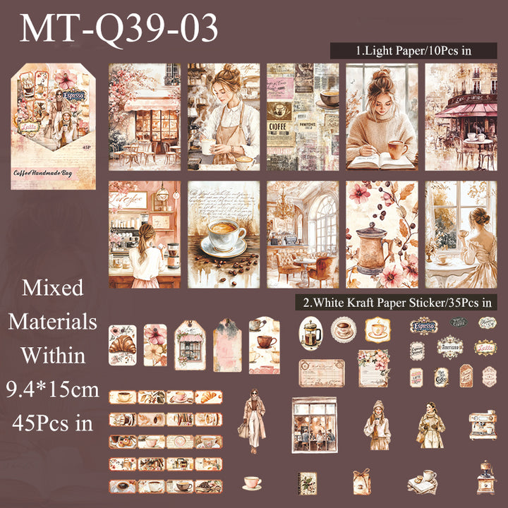 45PCS Coffee handmade bag series material paper set