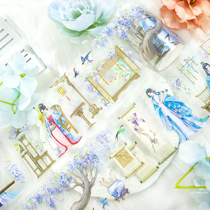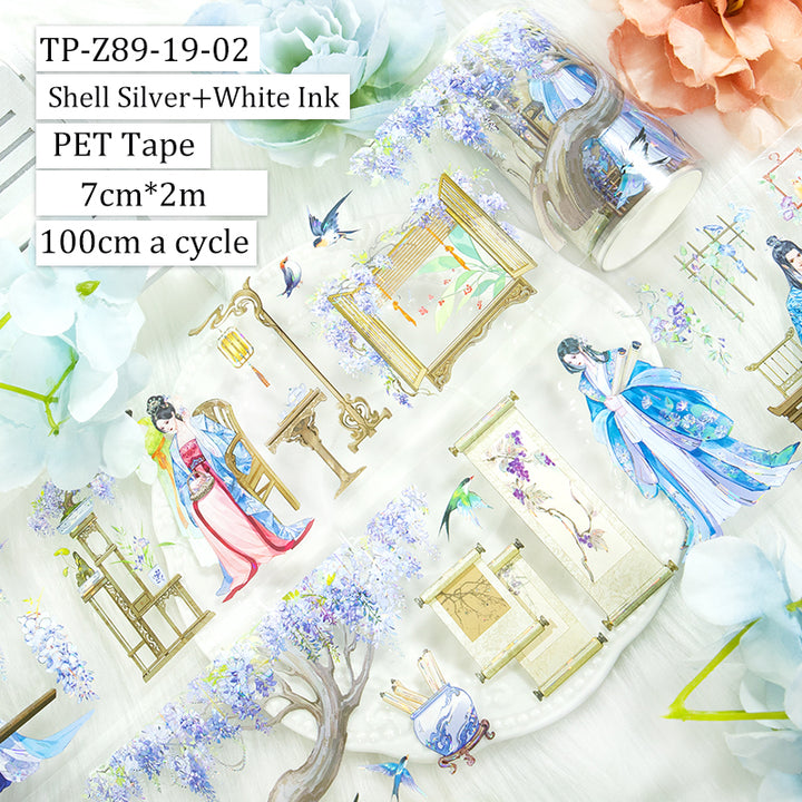 Silk and bamboo Washi/Shell Silver PET Tape