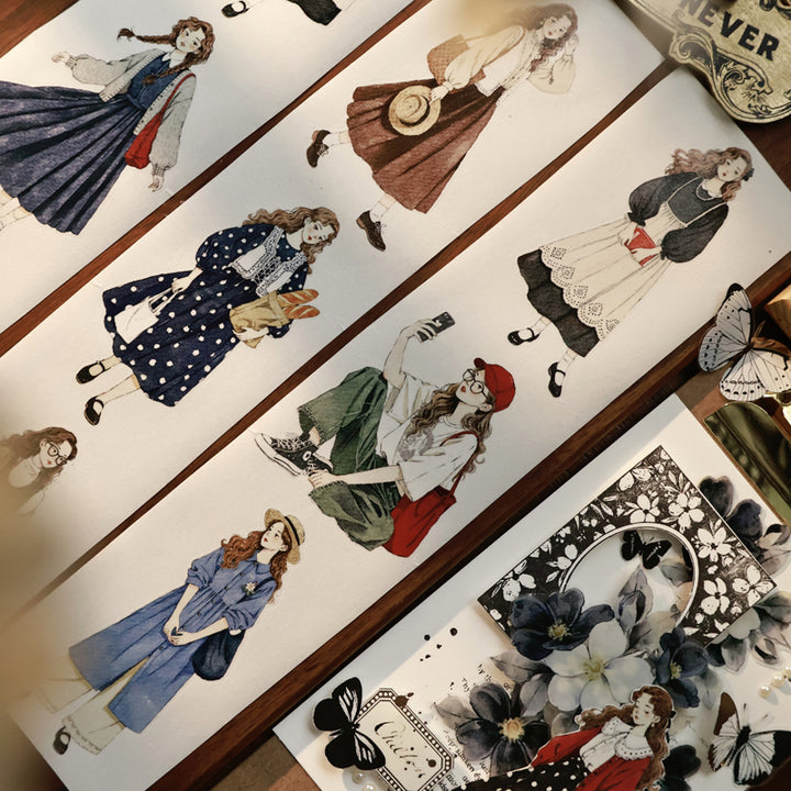 Whole Roll 5.5cm*6m Forest Girl Die Cutting Washi/PET Tape
