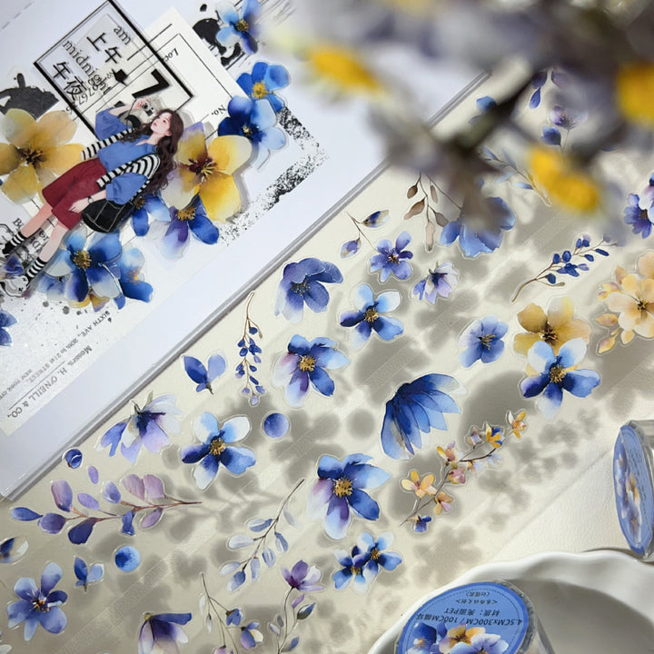Whole Roll 4.5cm*3m Blue purple flower Die Cutting PET Tape