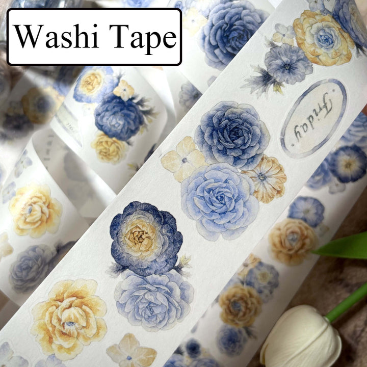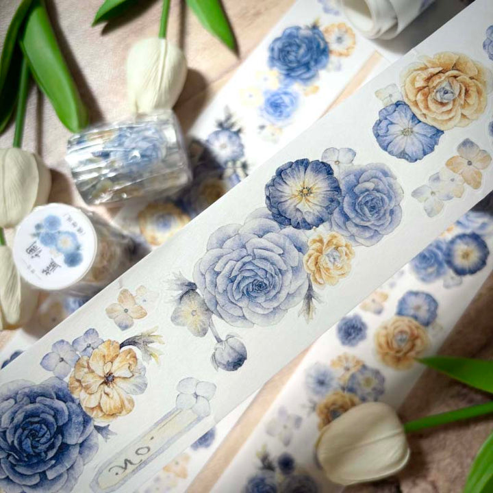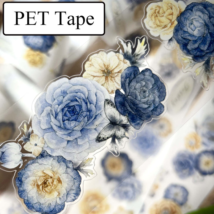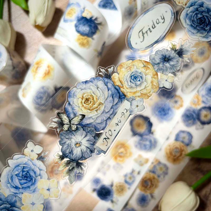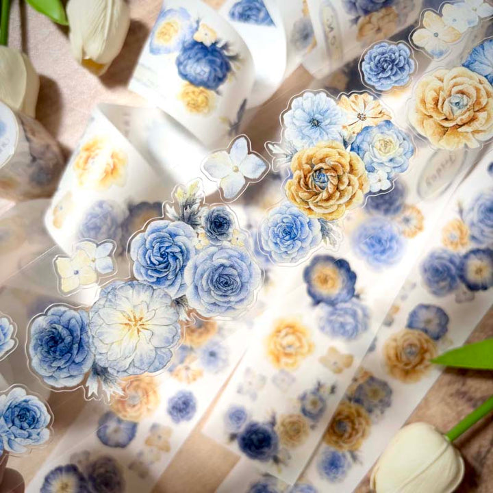 Whole Roll 5cm*5m Blues flower Die Cutting Washi/PET Tape