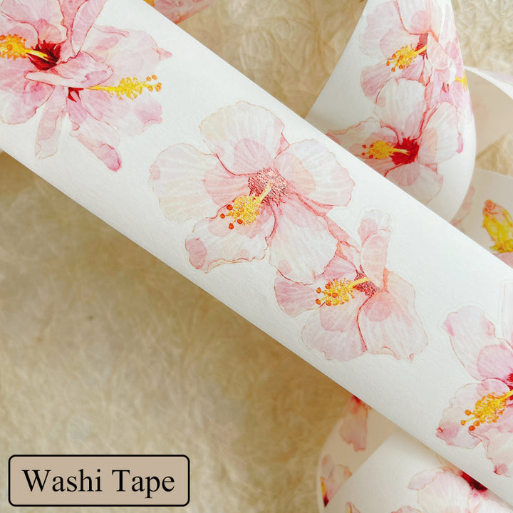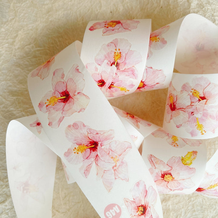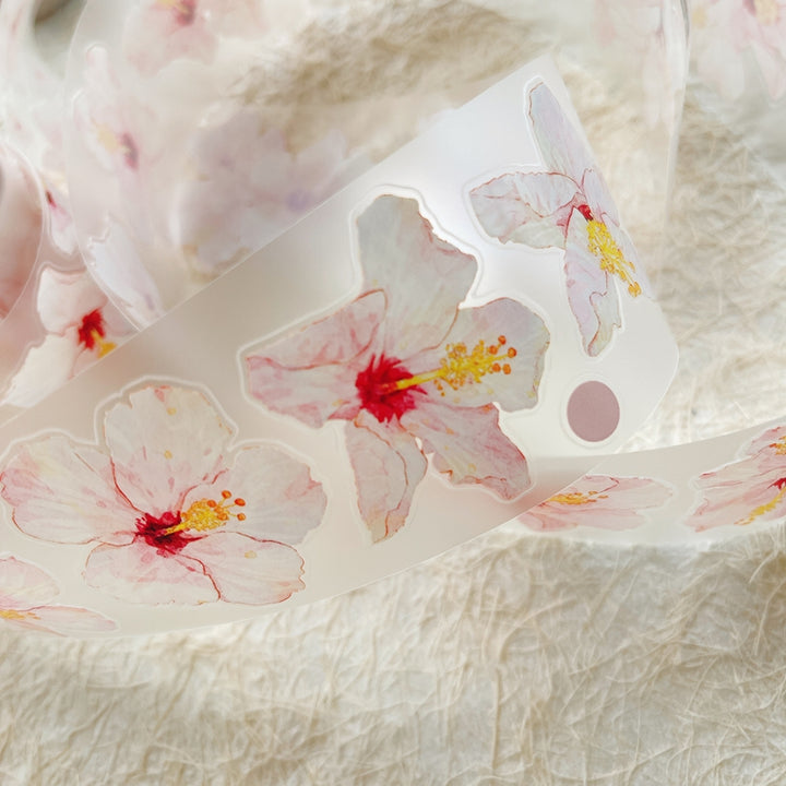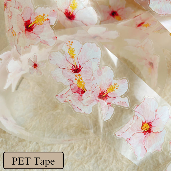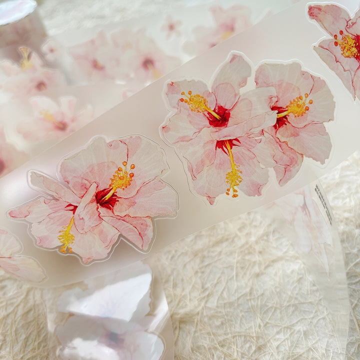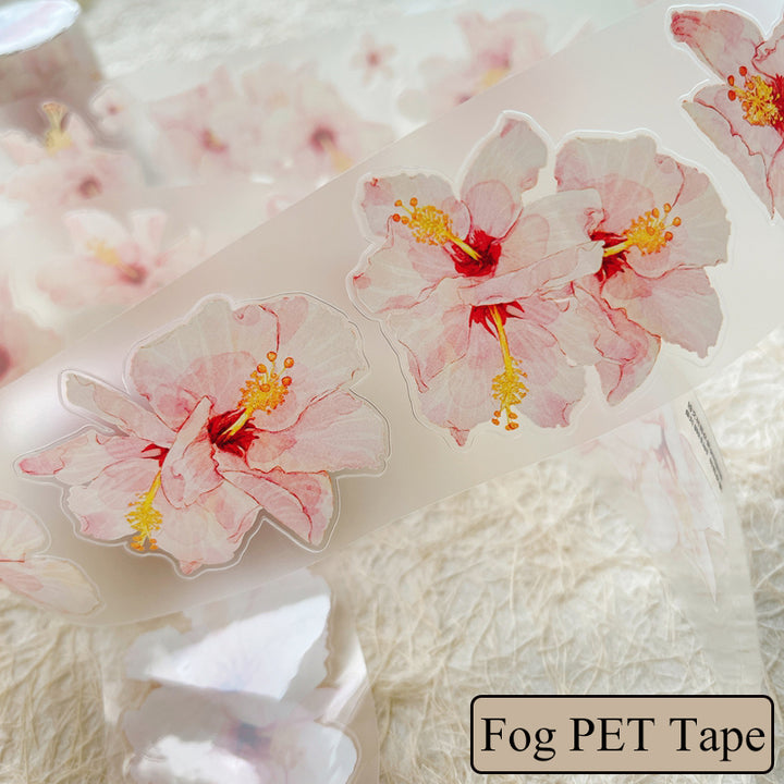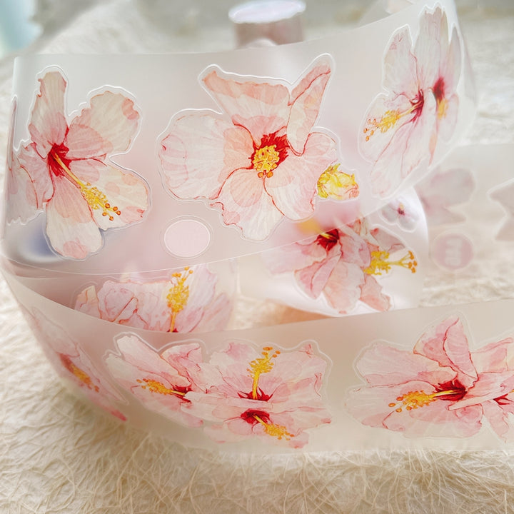 Whole Roll 5cm*5m Hibiscus flower Die Cutting Washi/PET/Fog PET Tape