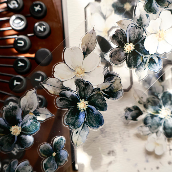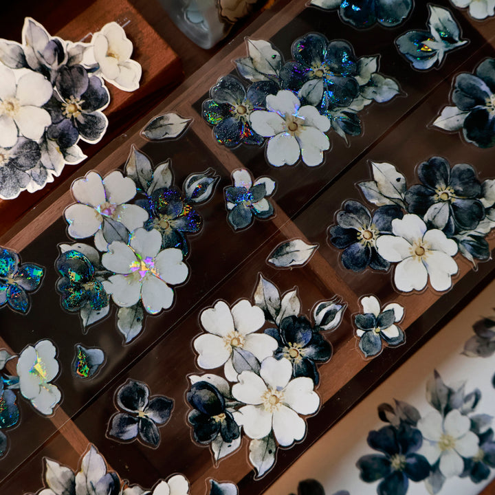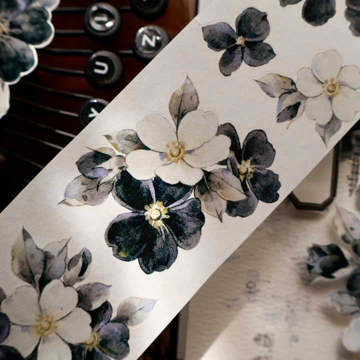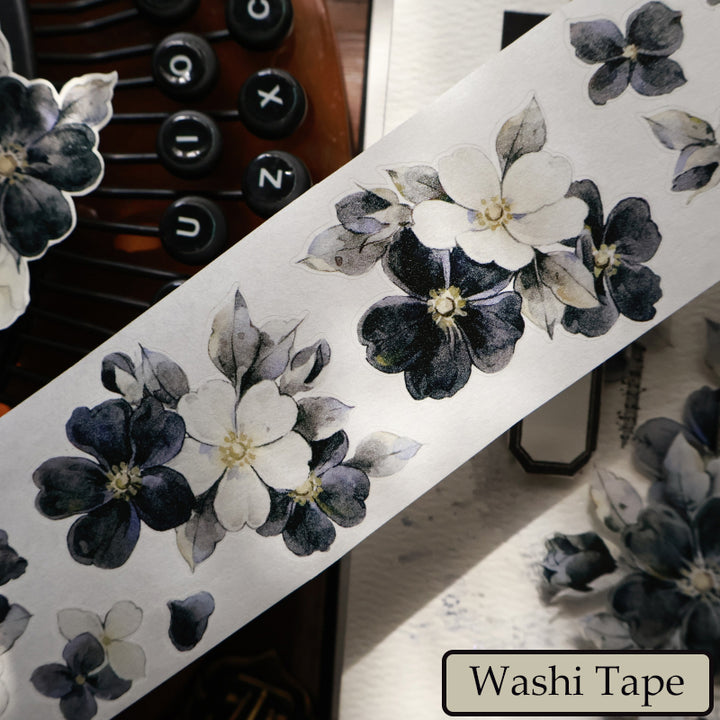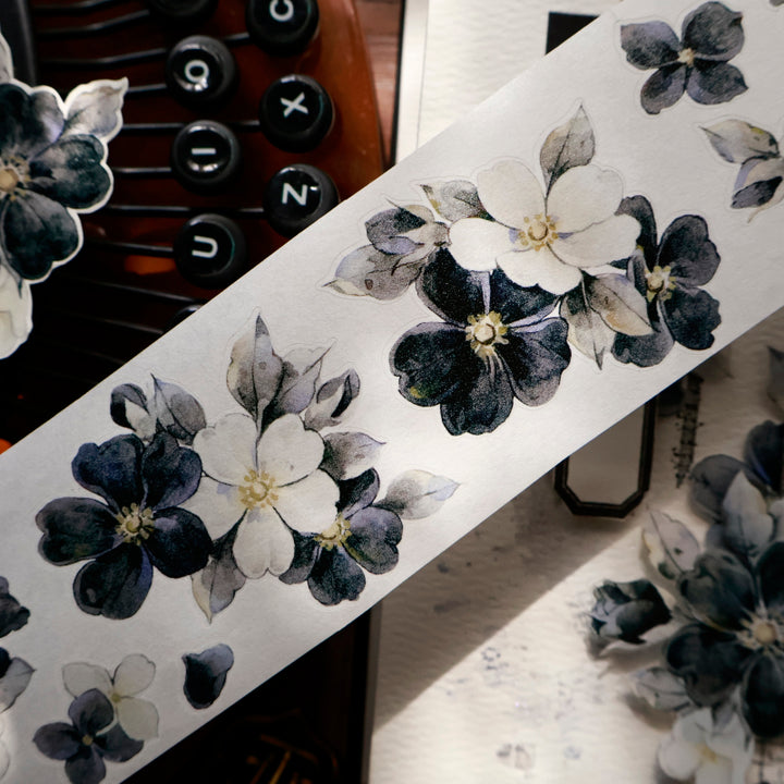Whole Roll 5.5cm*6m Black White Narrative Die Cutting Washi/PET/Shell Light PET Tape
